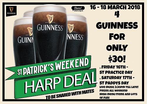 Live Music, Prizes for best dressed, best Irish Jig, Best Irish Accent and much much more! Live music from 3:30pm on Saturday through until late! Irish tunes to warm up to on the Friday night. Deals on Guinness, Irish Food, Jamesons deals and great banter.