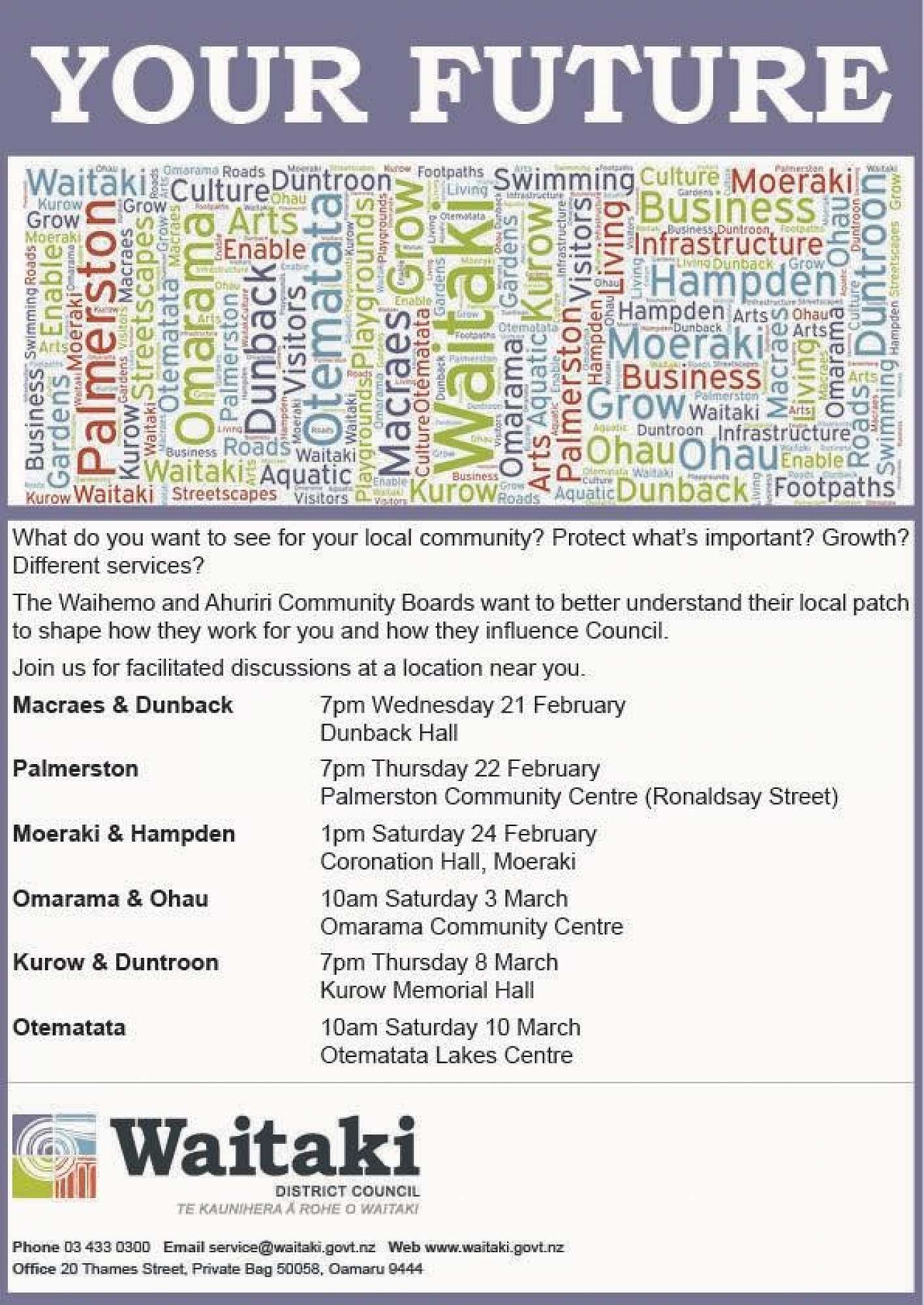 On Saturday, rate payers will have the opportunity to have input to the Ahuriri Community Board and Waitaki District Council to help vision what the future of Otematata could look like.