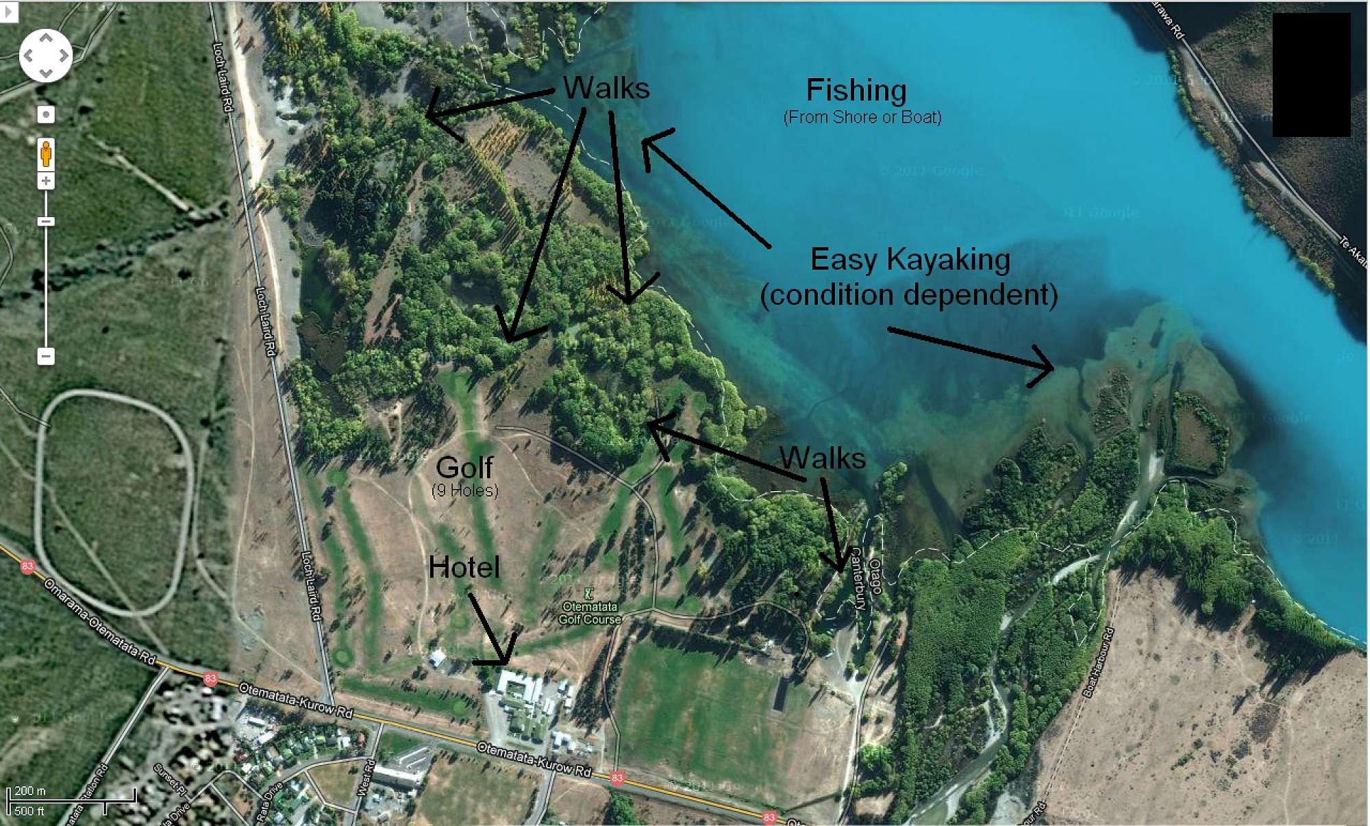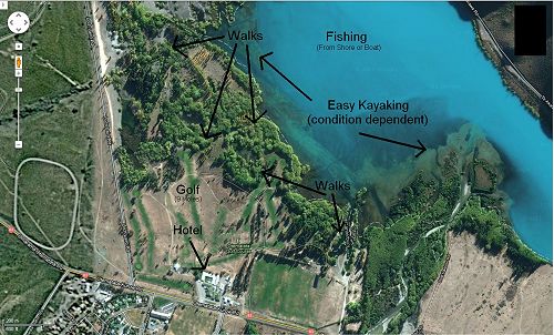 See the map below for an idea of a small area of lake close to the hotel suitable for canoeing. There are huge amounts of water for kayaking in the area – the possibilities and gorgeous views are endless.