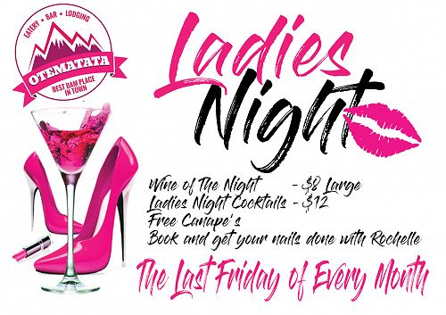 Come and join us for an evening of ladies fun. Last months night was super successful and we would love to see more of the Waitaki Valley Ladies come and enjoy our hospitality. We will run the van to Kurow (5pm) and Omarama (6pm) each ladies night with a return trip also so please book on 03 4387899. Cocktails made to order and served to your table, a new wine each night to try new varieties, delicious canapés to your table and Rochelle will be there to do nails each month. Then it's up to you girls! Invite others, bring new ideas and we will host and help!