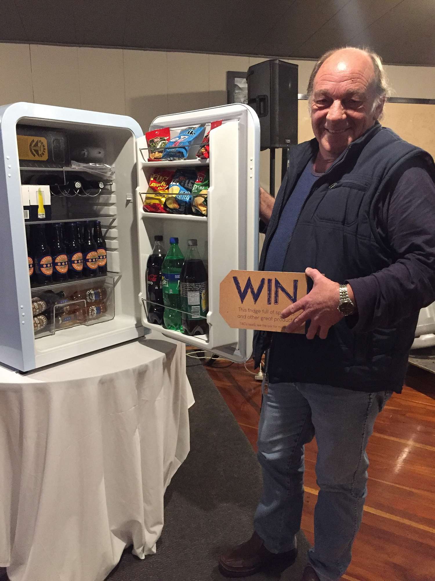 Over the Super Rugby season we were running a promotion giving away Speights prizes - George won the one of Speights fridge. Watch our Facebook page for our summer prize pack we are about to launch!