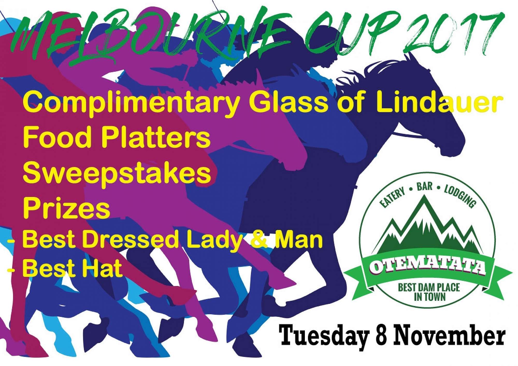 Prizes for best dressed man and woman, sweepstakes being run and best hat. Complimentary platters. Make an afternoon of it! See you there.